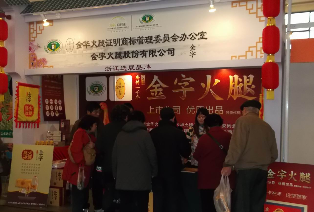 近日,首屆中國國際地理標志產(chǎn)品博覽會在上海展覽中心舉行,全國30多個省市(自治區(qū))160多個地理標志產(chǎn)品亮相。金字火腿作為浙江省16家地理標志產(chǎn)品之一代表金華火腿參展。此次展會由國家工商行政管理總局、上海市人民政府、中國國際貿(mào)易促進委員會、中國國際商會、中國民族貿(mào)易促進會主辦,規(guī)??涨埃状稳嬲故玖酥袊牡乩順酥井a(chǎn)品。