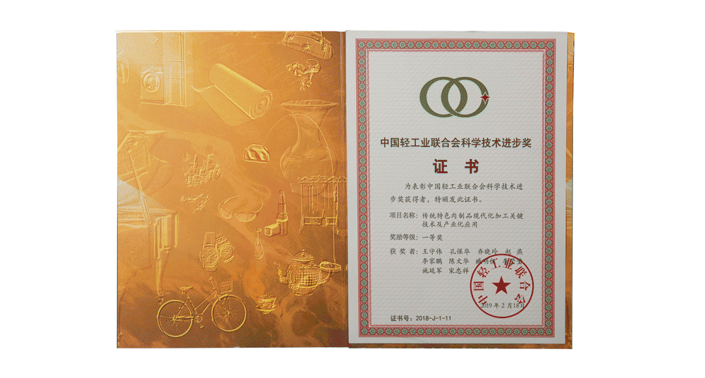 日前,中國(guó)輕工業(yè)聯(lián)合會(huì)對(duì)2018年度在科技發(fā)明及技術(shù)創(chuàng)新方面表現(xiàn)突出的企業(yè)及項(xiàng)目進(jìn)行了表彰,由金字參與的“傳統(tǒng)特色肉制品現(xiàn)代化加工關(guān)鍵技術(shù)及產(chǎn)業(yè)化應(yīng)用”項(xiàng)目經(jīng)審定及批準(zhǔn),喜獲中國(guó)輕工業(yè)聯(lián)合會(huì)科技進(jìn)步獎(jiǎng)一等獎(jiǎng)。