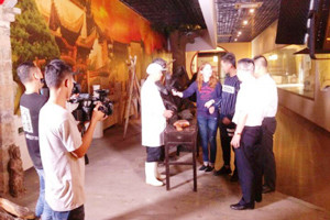 在《常中丞筆記》中,火腿叫做蘭熏,《東陽縣志》稱熏蹄,《本草求原》稱南腿,由此可觀,火腿此物名聲深遠(yuǎn),頗受眾人喜愛,不然也不會有如此多的“小名”。 10月17日這天,浙江經(jīng)視旅游節(jié)目《48小時(shí)》攝制組團(tuán)隊(duì)在中國火腿博覽館、世界火腿博覽館開始了“火腿”的探索之旅,從起源伊始談至繁華盛宴,期間故事種種萬千。 從中國火腿博覽館入口處的“百姓勞軍圖”便開始了這場對話。而在博覽館內(nèi)的火腿制作流程雕塑則完全將攝制組吸引,無論是考驗(yàn)刀工的制作火腿頭道工序——修胚,還是考驗(yàn)“鹽功”的——上鹽環(huán)節(jié),都深