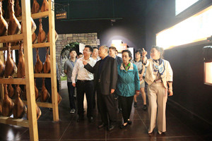 6月28日下午,省人大常委會副主任馮明一行在金華市人大常委會副主任陳志身等的陪同下,參觀考察了建于金字火腿內(nèi)的中國火腿博覽館和世界火腿博覽館,了解金華火腿的行業(yè)發(fā)展現(xiàn)狀。 金字火腿總經(jīng)理吳月肖向馮明一行介紹了金華火腿的歷史文化、傳統(tǒng)制作工藝、營養(yǎng)價(jià)值和儲存食用方法。馮明指出,金華火腿雖然是一個(gè)傳統(tǒng)行業(yè),但也要跟上形勢,通過各種渠道進(jìn)行推廣傳播,她特別強(qiáng)調(diào)了互聯(lián)網(wǎng)營銷在當(dāng)代企業(yè)發(fā)展中的作用,十分關(guān)心企業(yè)在這一方面的發(fā)展……