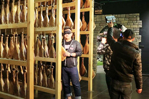 近日,浙江衛(wèi)視《廚星高照·美食兄弟連》欄目組來(lái)到浙江金華探訪(fǎng)巴瑪火腿鮮為人知的秘密。 浙江第一美食類(lèi)電視欄目《廚星高照》的主持人陳黃臻號(hào)稱(chēng)美食小霸王,肉食主義捍衛(wèi)者。來(lái)到巴瑪火腿的第一件事就是游覽展示了各種火腿文化的世界火腿博覽館,在這里黃臻不僅了解了世界各地的火腿品種,而且還展示了盲眼摸腿的技藝,令巴瑪火腿的工作人員也是連連贊賞。